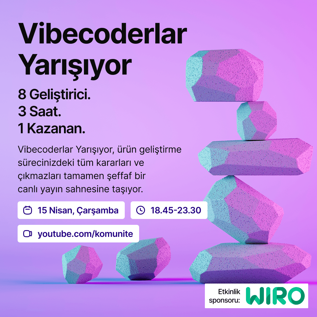 Vibecoderlar Yarışıyor, Komünite Space'de saat 19:00 - 00:00 saatileri arasında gerçekleşecektir.